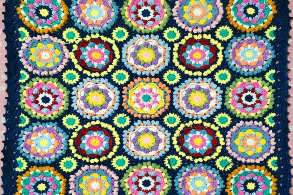 钩针小花砖拼花毯