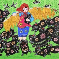 农民画《梨花盛开动春潮》
